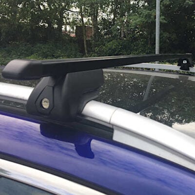 Roof bars for the VW Touareg with raised roof rails. Available in aluminium or steel, these bars are mounted across the roof rails. They are suitable for fitting roof boxes or carrying loads up to 75kg*. The kit includes a lockable foot pack with 4 feet that secure the roof bars to the rails.